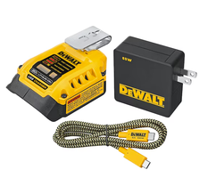 Chargez vos dispositifs et accessoires compatibles de façon pratique avec ce kit de charge USB. Chargez vos packs de batteries DEWALT® 20V MAX* et FLEXVOLT® rapidement avec ce kit de charge bidirectionnel 100 W à port USB-C et avec une puissance de sortie pour charger vos autres appareils personnels jusqu'à 100 W. Le port USB-A du chargeur rapide agit en tant qu'adaptateur et vous permet de charger des appareils jusqu'à 12 W à l'aide des cordons USB traditionnels. Ce kit inclut le chargeur USB DCB094, un cordon USB de 100 W, une alimentation électrique de 65 W et un crochet de ceinture pour le rangement en déplacement.